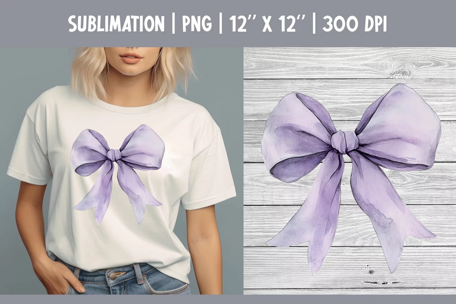 Purple Watercolor Bow Clipart | Vintage Coquette Sublimataio