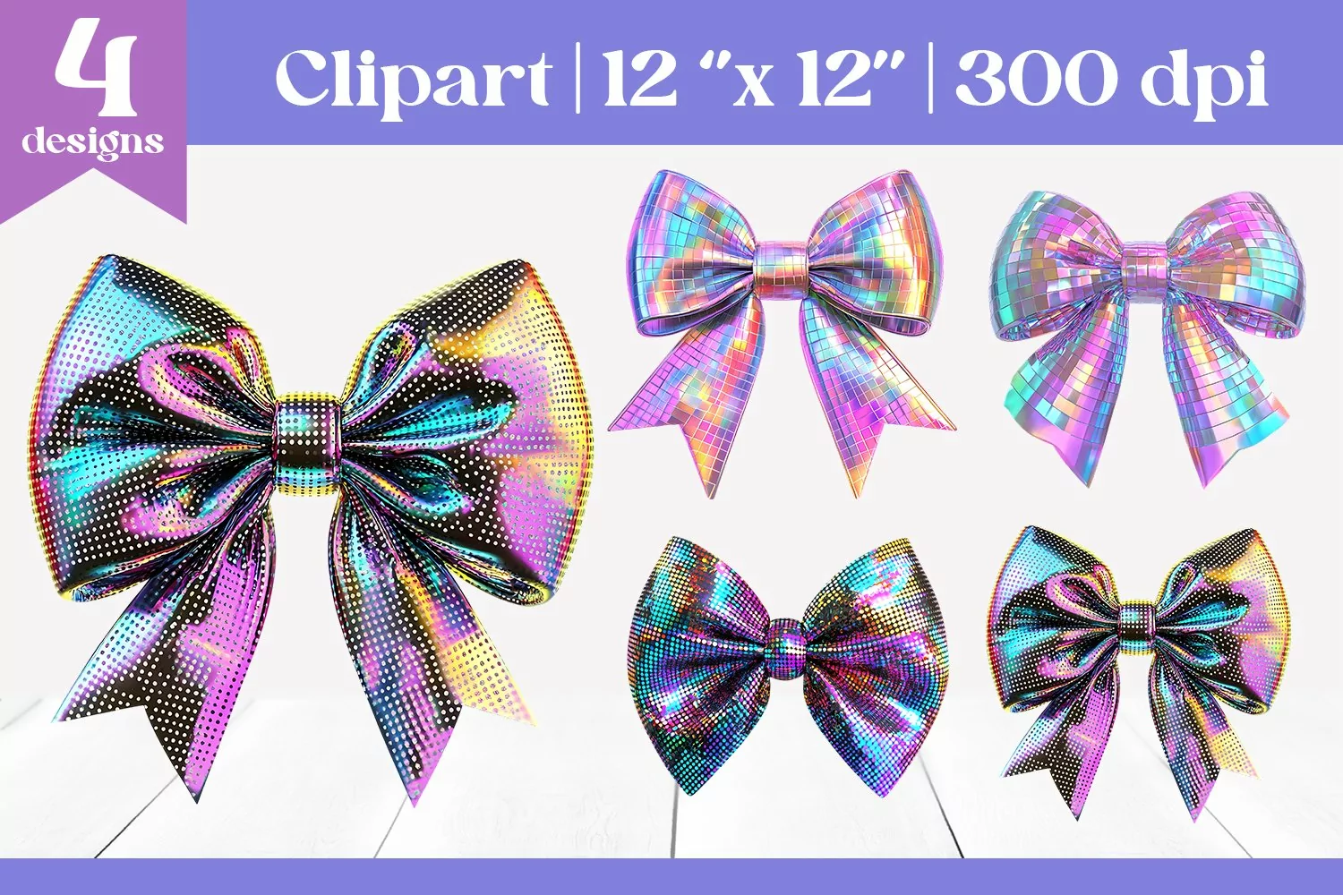 Holographic Disco Bows | Coquette Sublimation Clipart