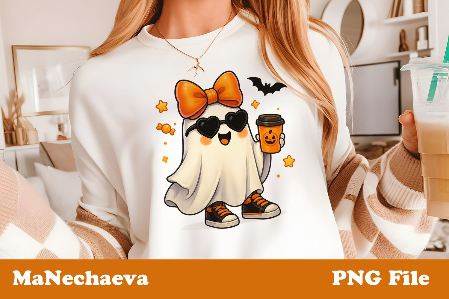 Cute Halloween Ghost Clipart Spooky Cute Halloween Clipart Kawaii Halloween Ghost Sublimation Shirt Mug Pillow Tote Bag Sticker Coquette Halloween Ghost Coffee Ghost With Bow Sublimation Design Trendy Halloween Ghost Illustration Halloween Ghost With Coffee Cup Whimsical Halloween Sublimation Art Stylish Halloween Ghost For Crafts