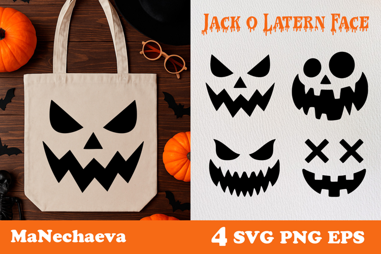 Add spooky flair to your Halloween projects with these Jack o Lantern pumpkin faces! Featuring four bold designs, they are perfect for festive shirts, tote bags, mugs, party invitations, and seasonal wall art. Create a chilling trick-or-treat atmosphere with these versatile Halloween silhouettes.