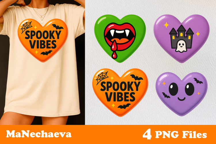 Bring fun and spooky vibes to your Halloween crafts with this glossy candy heart clipart set. Featuring vampire lips, haunted castle, ghostly faces, and a bold Spooky Vibes design, these hearts combine creepy and cute for the perfect seasonal touch. Great for Halloween shirts, mugs, party invites, and more.