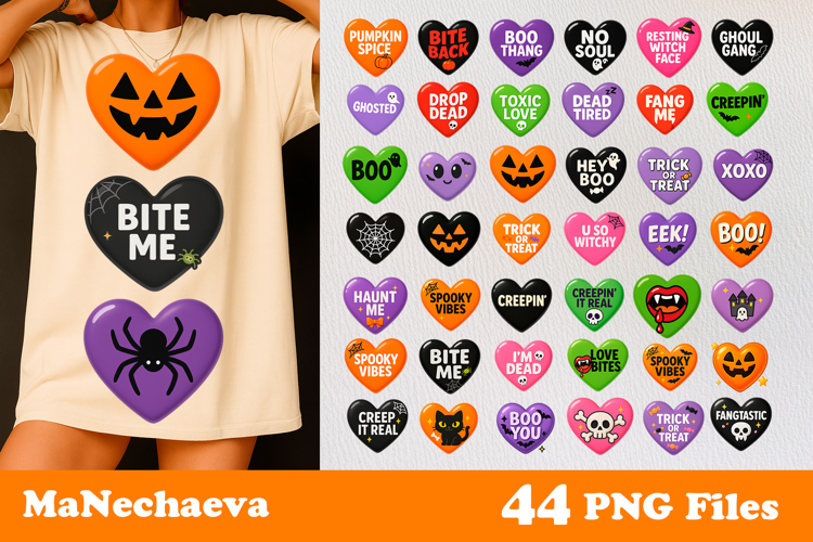 Similar Design Products to Halloween Candy Heart Clipart Bundle | Cute Glossy Sublimati