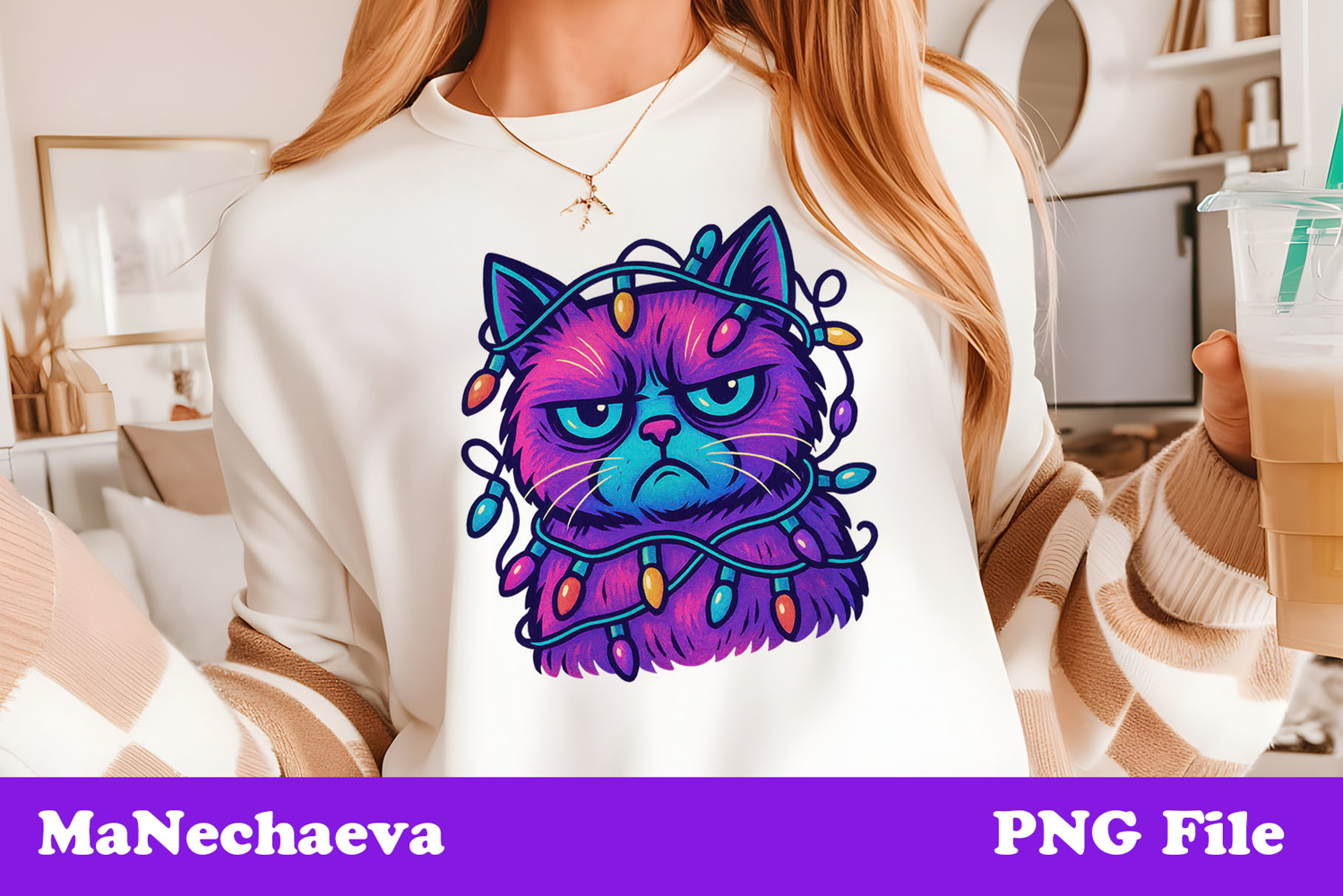 Similar Design Products to Christmas Iridescent Sublimation | Neon Grumpy Cat Clipart