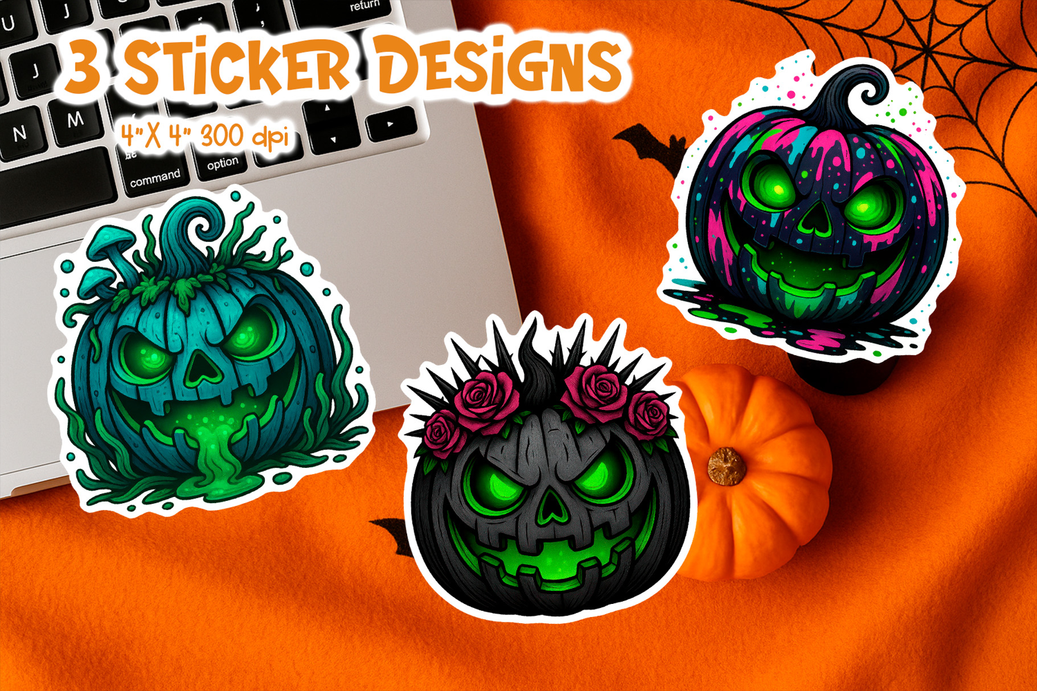 Add a bold and spooky vibe to your Halloween crafts with this unique pumpkin sticker trio. Inside you’ll find a swampy slime pumpkin, a dripping neon pumpkin, and a black rose gothic pumpkin glowing with eerie green light. Perfect for those who love dark, alternative Halloween aesthetics.