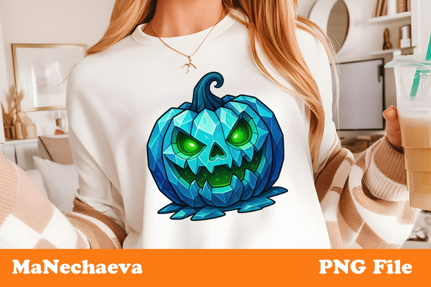 Halloween Pumpkin Sublimation Creepy Halloween Sublimation Design Ice Crystal Jack O Lantern Clipart Frozen Pumpkin Halloween Png Scary Icy Pumpkin Sublimation Design Glowing Green Eyes Pumpkin Art Spooky Crystal Pumpkin Png Horror Halloween Pumpkin Sublimation Unique Icy Jack O Lantern Design Sublimation Pumpkin For Halloween