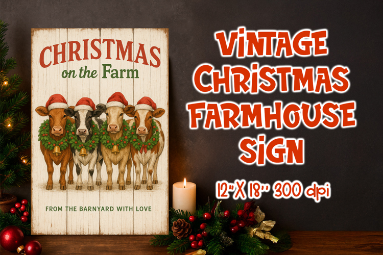 Bring farmhouse charm to your holiday season with this Vintage Christmas Farmhouse Sign. Featuring four festive cows in Santa hats and wreaths, this rustic wall art design captures the cozy, nostalgic spirit of Christmas on the farm. Perfect for adding warmth and vintage flair to your seasonal decor.