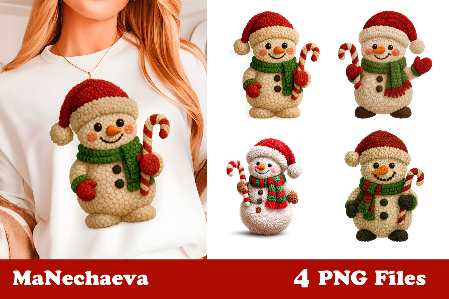 Latch Hook Yarn Christmas Sublimation | Cute Snowman Clipart