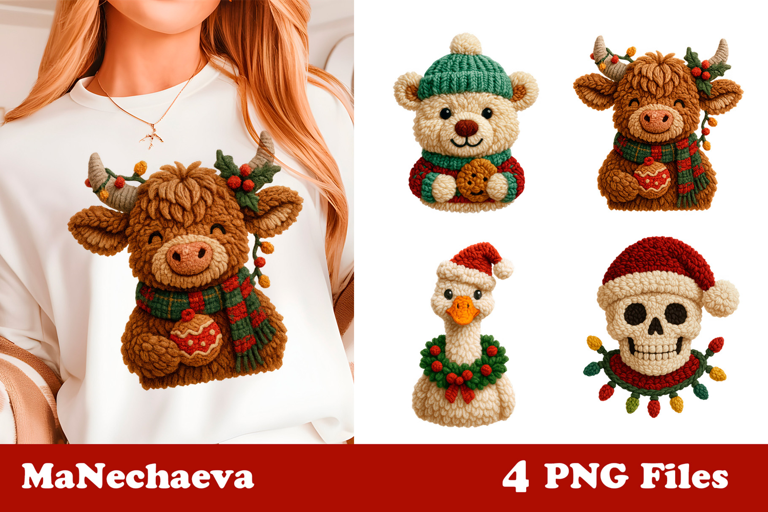 Bring cozy holiday charm to your creative projects with this latch hook yarn Christmas sublimation design. These fluffy textured characters feature festive animals and winter icons inspired by yarn craft and cozy handmade style, perfect for bold Christmas sublimation prints and decorative clipart projects.