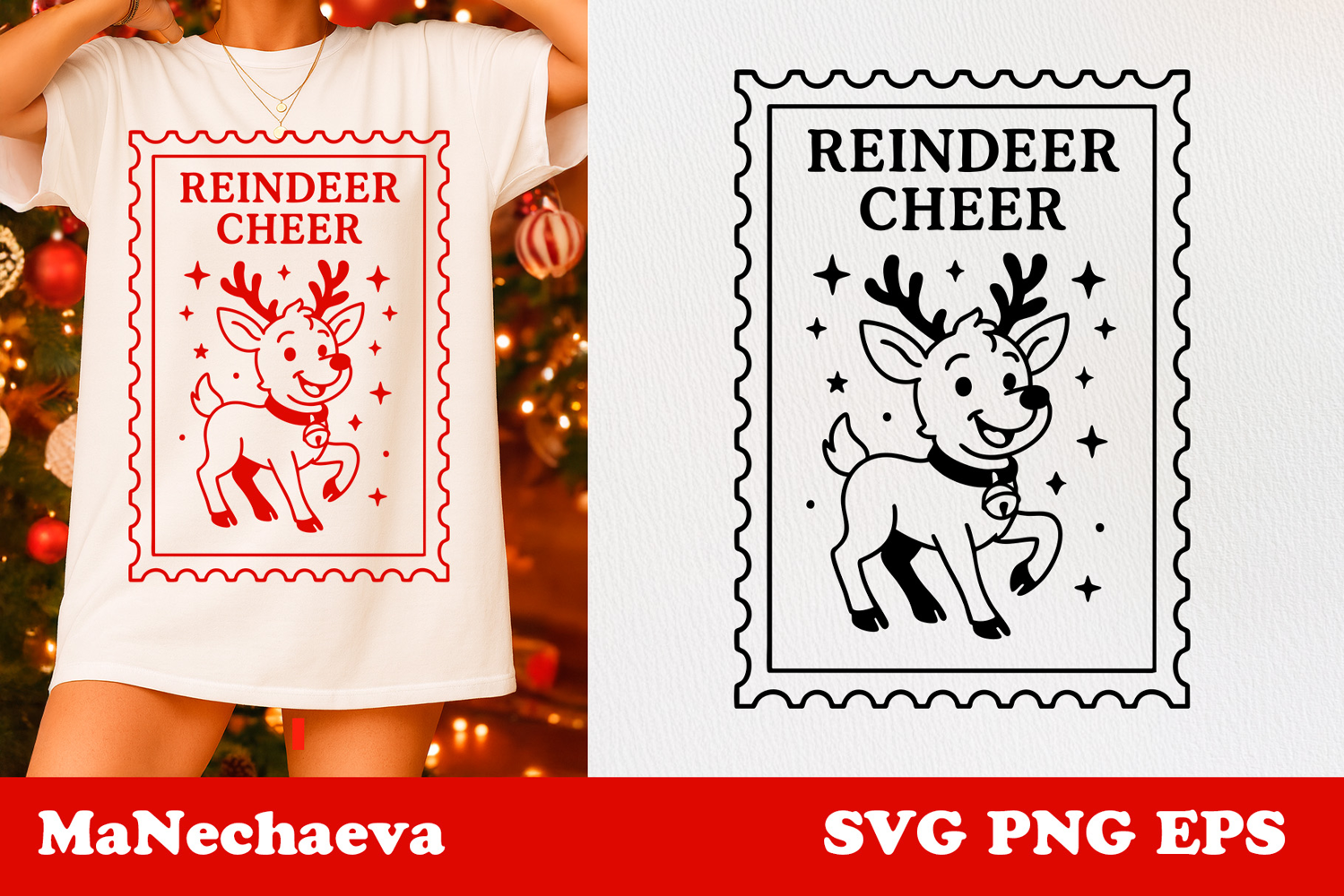 Bring cheerful Christmas energy to your holiday projects with this adorable “Reindeer Cheer” postage stamp design. The clean outline style is perfect for shirts, mugs, cards, tags, stickers, ornaments, holiday décor and festive sublimation gifts. A fun and nostalgic illustration for anyone who loves classic Christmas themes.