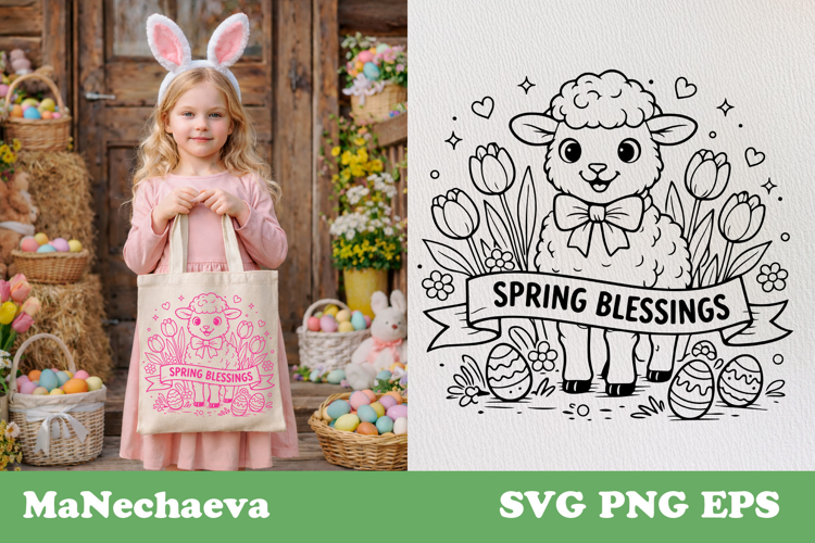 Spring Blessings Lamb SVG | Cute Easter Animals Sublimation example image 1