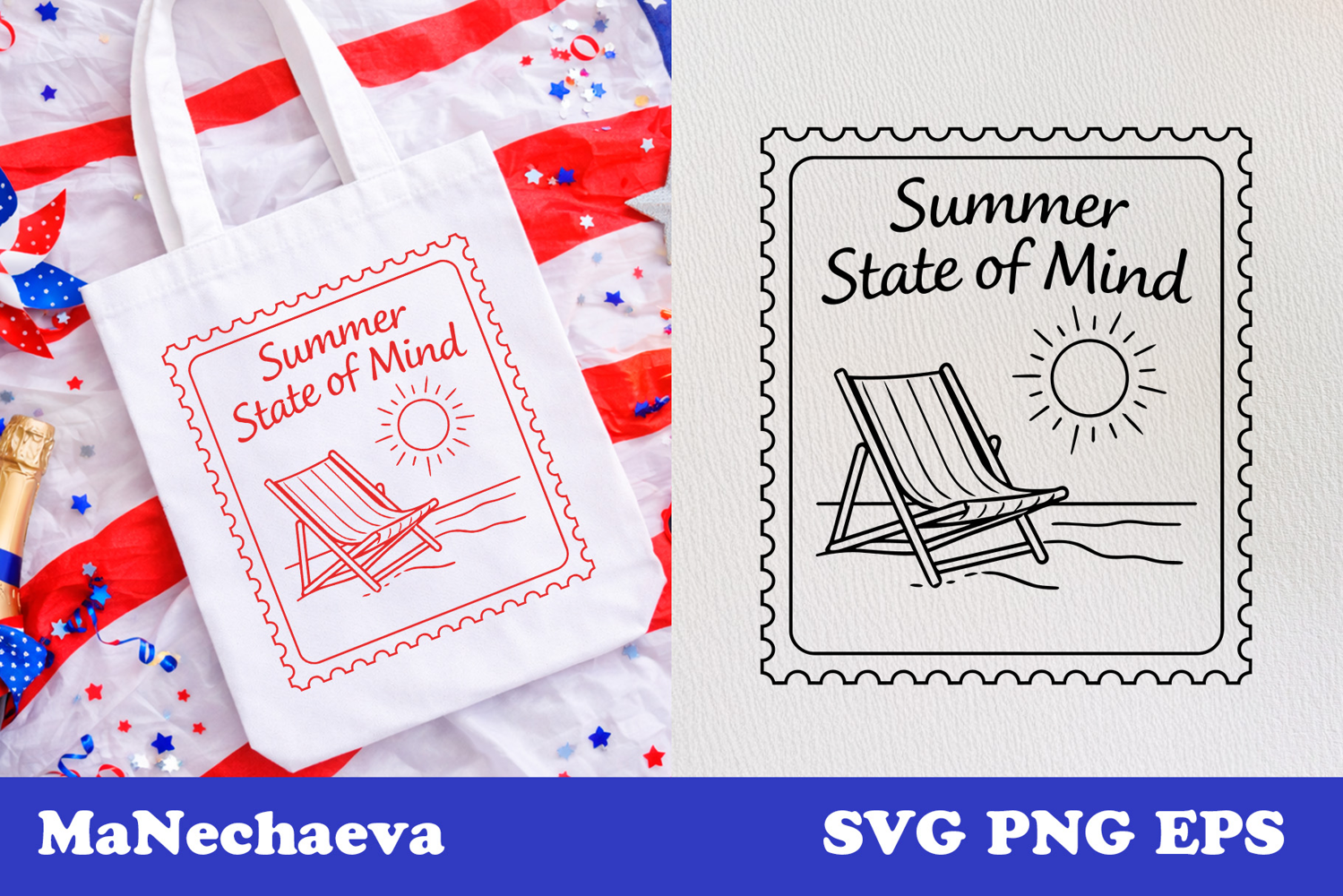 Summer State Of Mind Svg Shirt Mug Tote Pillow Sticker Magnet Wall Art Patriotic Postal Stamp Svg 4th Of July Summer Svg Independence Day Beach Design Beach Chair Sun Svg Design Summer Patriotic Stamp Svg Usa Summer Vibe Svg Vacation Beach Svg Design Summer Svg For Shirts Mugs Bags