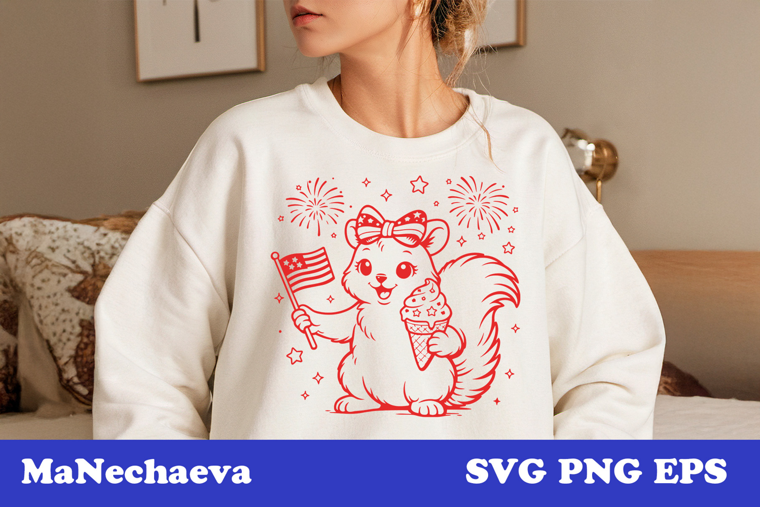 Cute 4th of July Animal SVG | Squirrel Ice Cream Patriotic example image 1