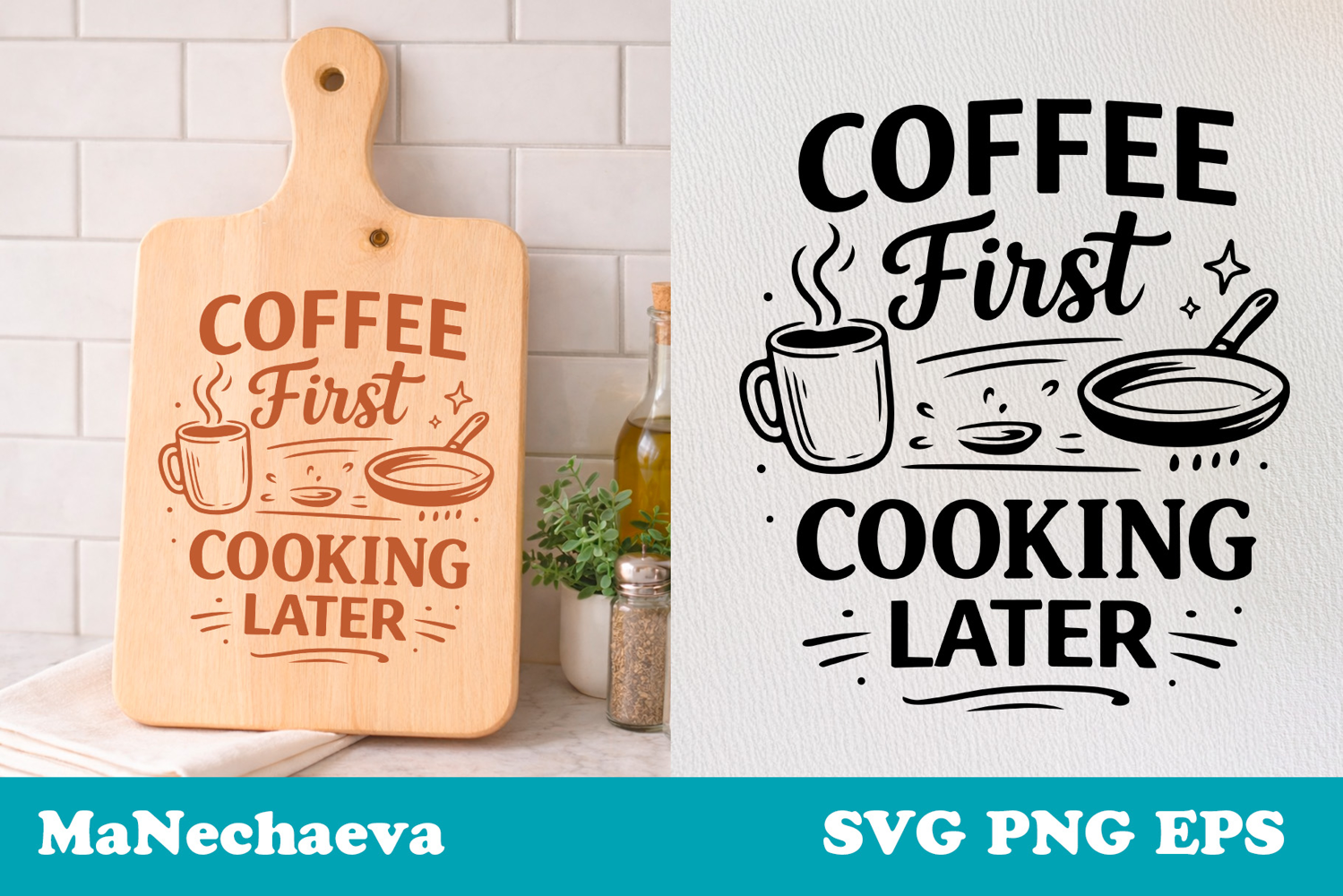 Funny Kitchen Quote SVG | Coffee First Cooking Later Sign