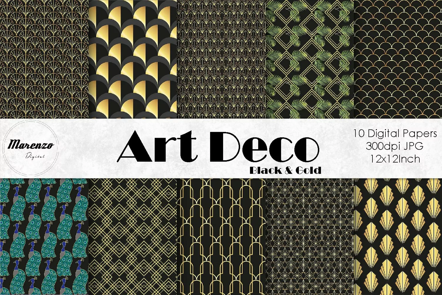 Similar Design Products to Art Deco Digital Papers - Black and Gold x 10