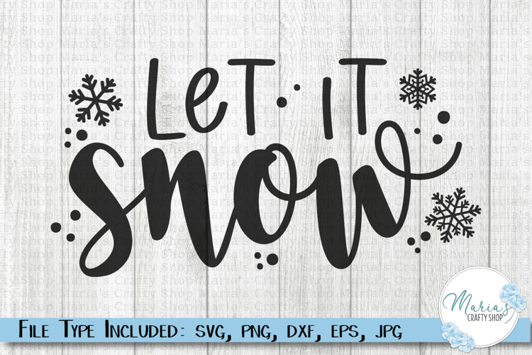 This digital design features the phrase “Let It Snow” with stylized winter elements and snowflakes. It is suitable for holiday and winter-themed crafting projects such as t-shirts, mugs, signs, ornaments, cards, and home décor.