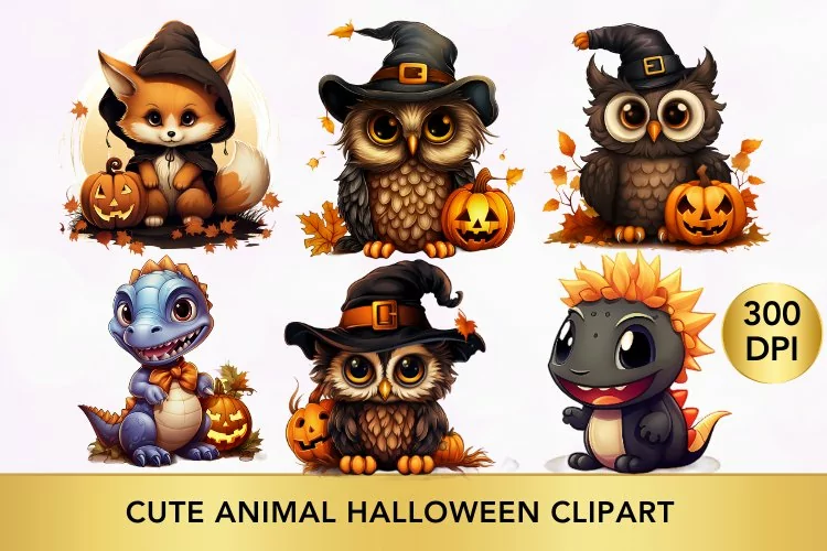 6 PNG Cute animal halloween clipart Bundle