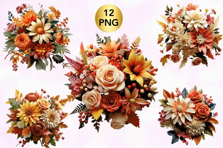 Similar Design Products to 12 PNG Autumn flowers clipart, Autumn flowers sublimation