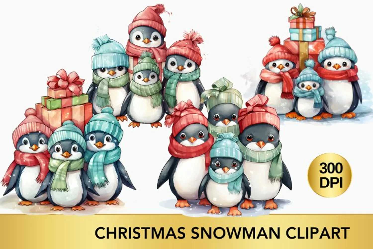 christmas cute penguin clipart, penguin sublimation bundle