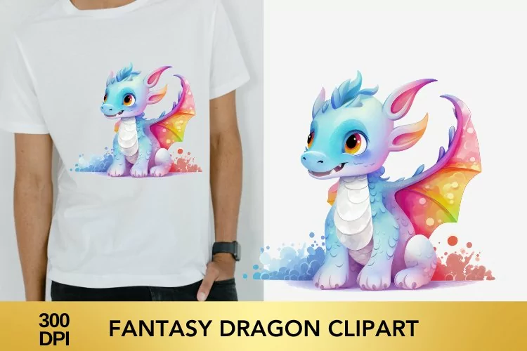 Adorable collection of 30 PNG Watercolour Fantasy Dragon Clipart. Perfect to add a touch of cute to your designs.
