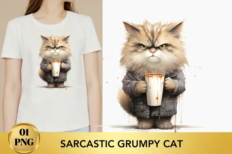 Sarcastic Grumpy with coffee Cat, Cat sublimation