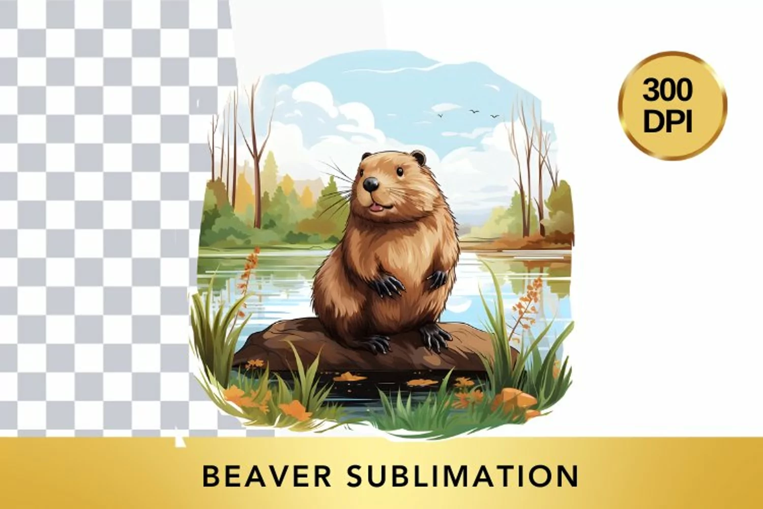 Adorable collection of Watercolor beaver Clipart, Animal Sublimation PNG. Perfect to add a touch of cute to your designs.