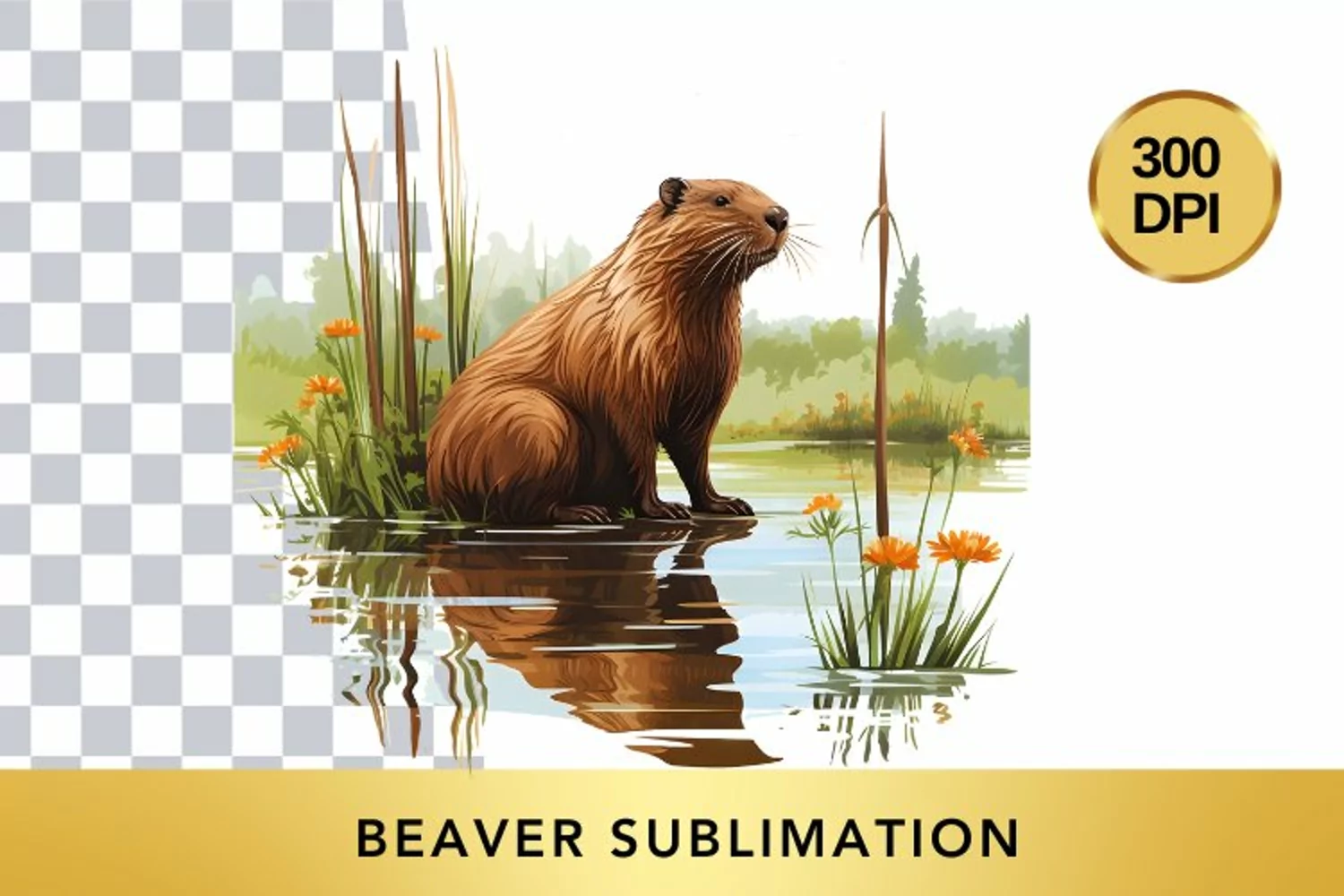 Adorable collection of Watercolor beaver Clipart, Animal Sublimation PNG. Perfect to add a touch of cute to your designs.