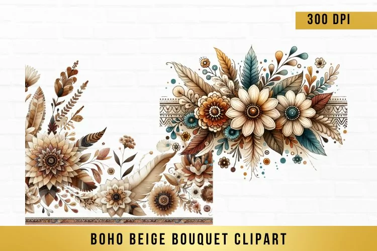 Adorable collection of Watercolor Boho Beige Bouquet Clipart, Boho Flowers png. Perfect to add a touch of cute to your designs.