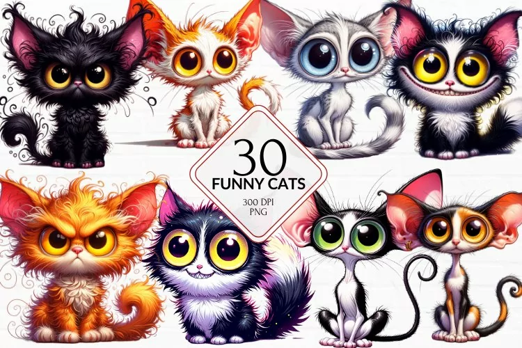 Funny Cat Clipart, Funny Cats Sublimation bundle