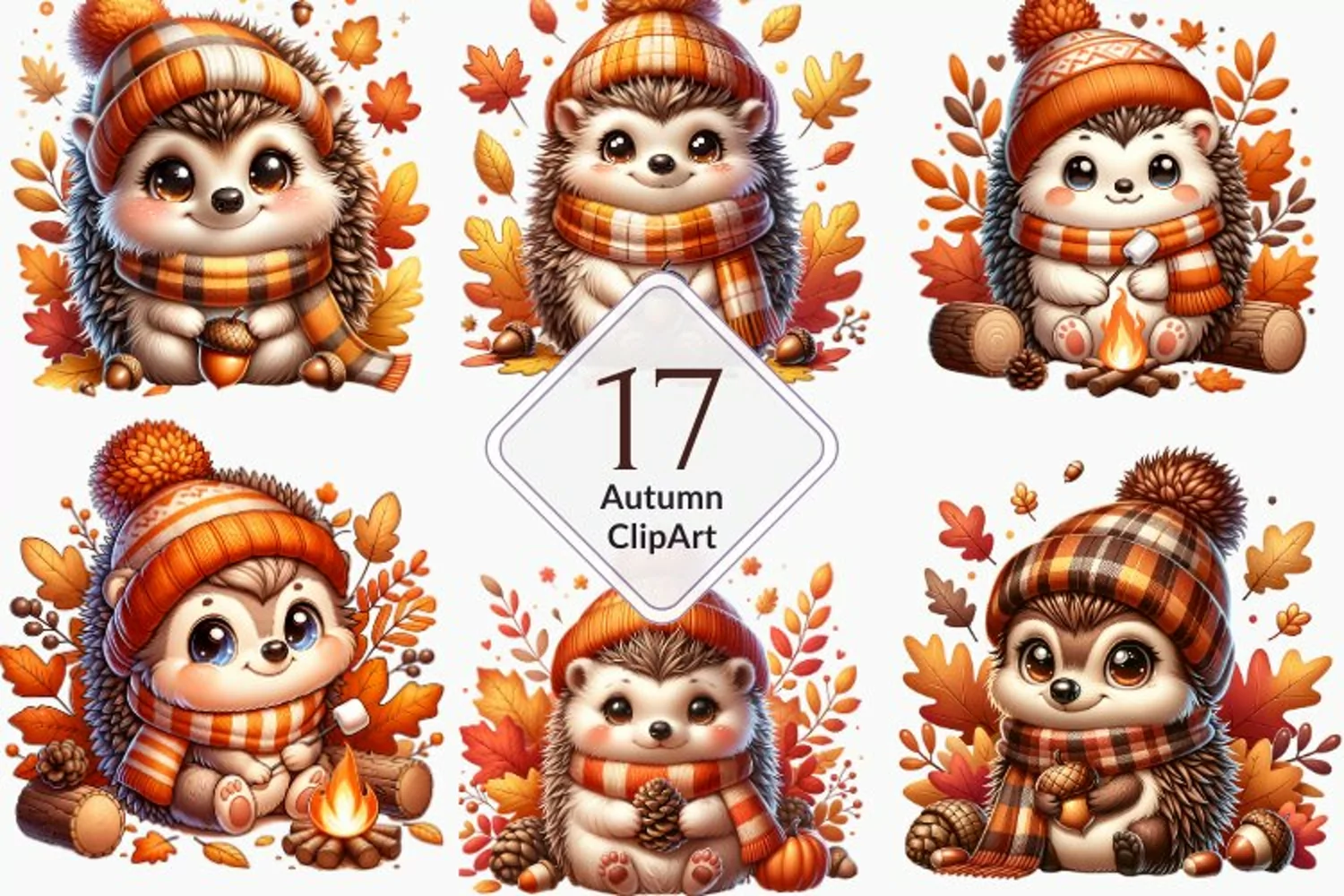 Similar Design Products to watercolor autumn hedgehog clipart, autumn hedgehog bundle