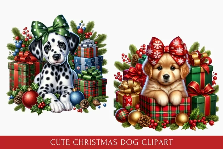 Cute Christmas Dog clipart, Dog Sublimation example image 1