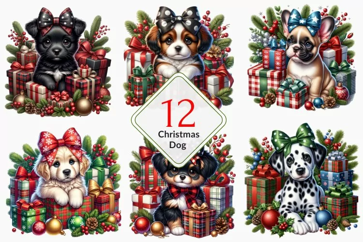 Cute Christmas Dog clipart, Dog Sublimation bundle