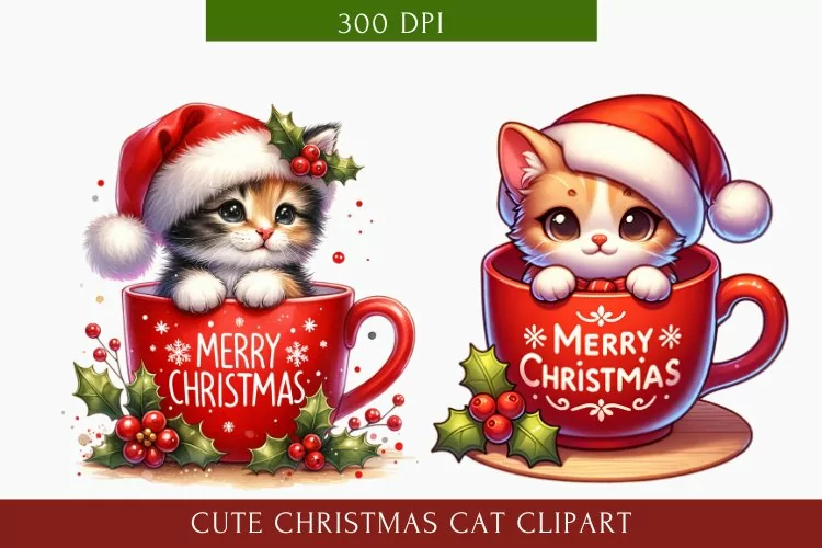Similar Design Products to Cute Christmas Cat clipart, Cat Sublimation