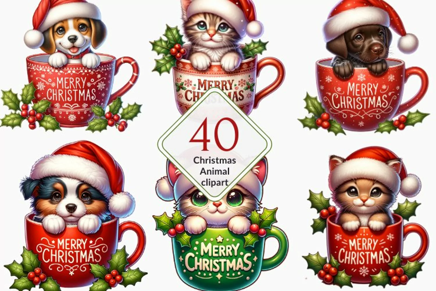 Similar Design Products to Cute Christmas Animal clipart, Cat Sublimation bundle