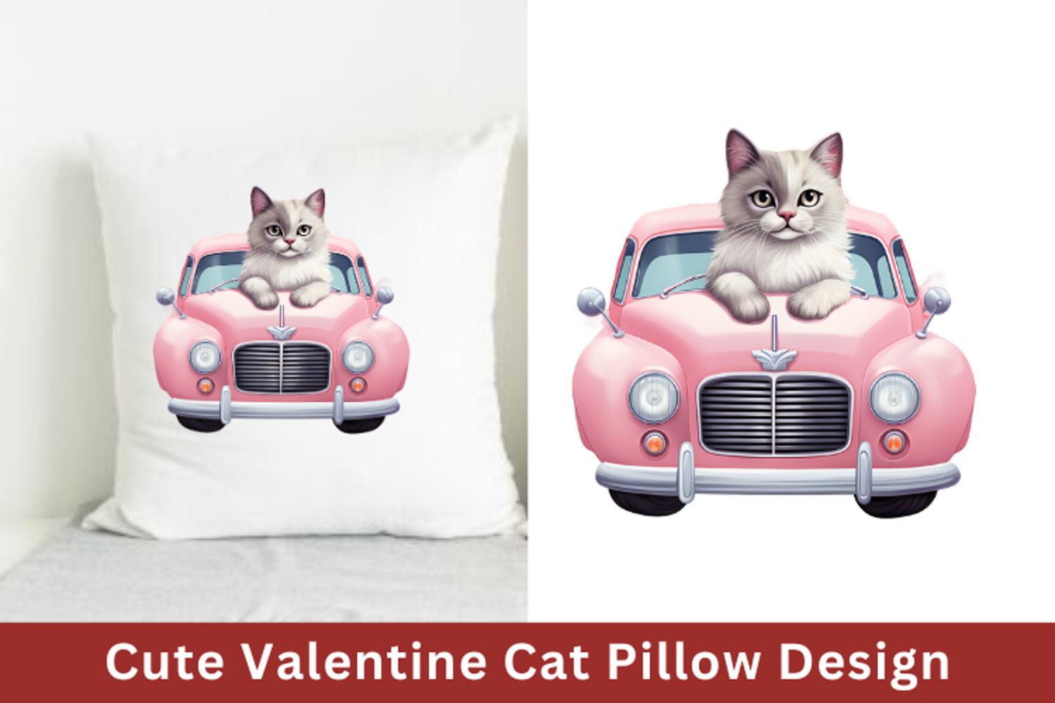 Cute Valentine Cat Pillow Design, Valentine Sublimation