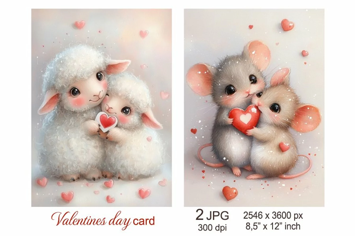 Love Valentines day card Valentine scrapbook Cute Lamb Mouse example image 1