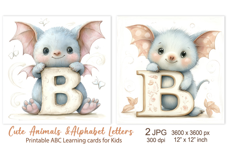 Bat, Cute Animal Alphabet Letters, ABC Printable cards example image 1