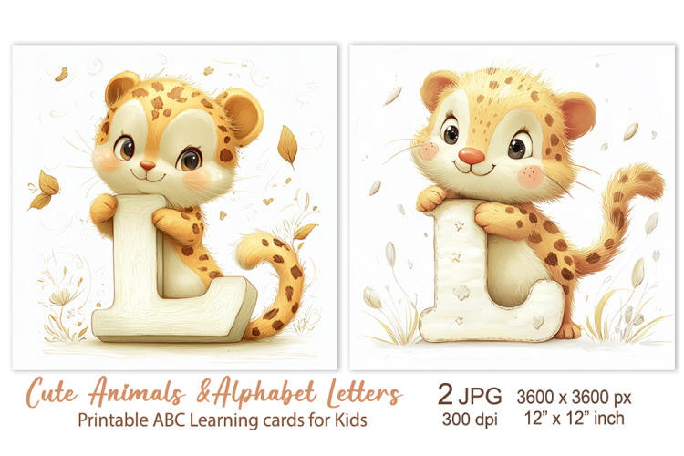 Cute Leopard Baby Animal Alphabet Letters ABC Printable card example image 1