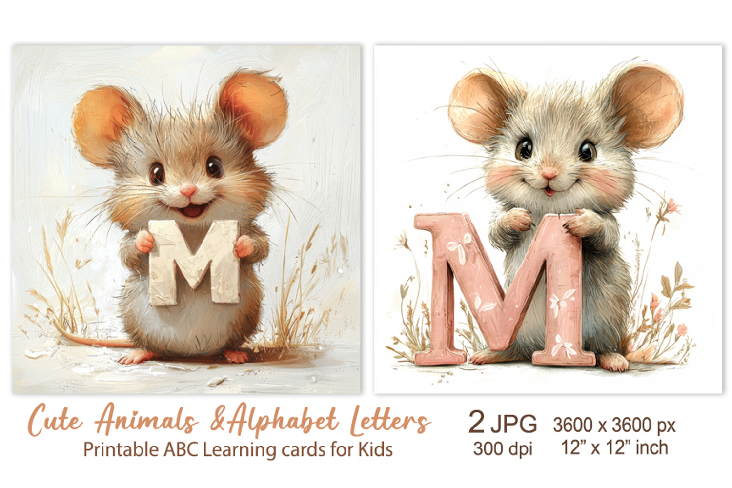 Cute Mouse, Cat Animal Alphabet Letters, ABC Printable card