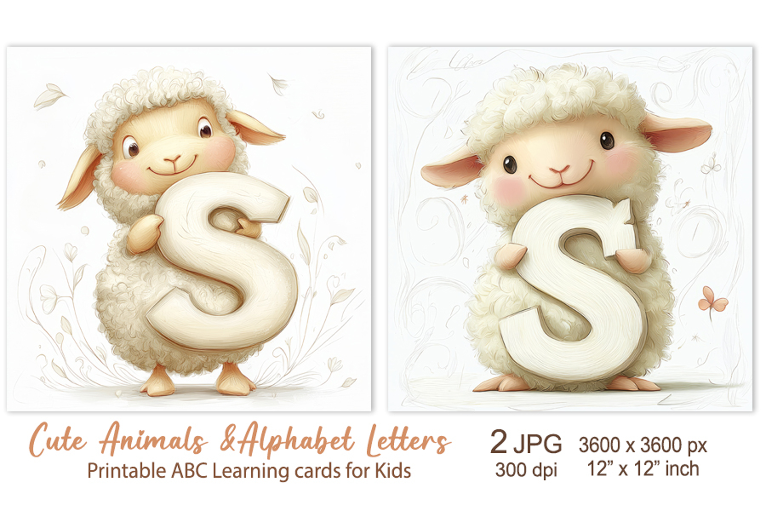 Cute Sheep, Cat Animal Alphabet Letters, ABC Printable cards