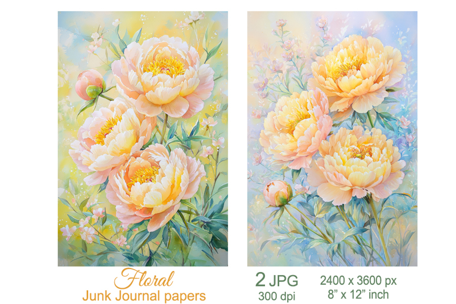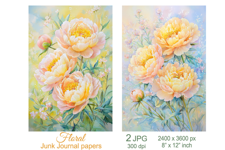 Similar Design Products to Peony flowers scrapbook papers, Floral Junk Journal pages