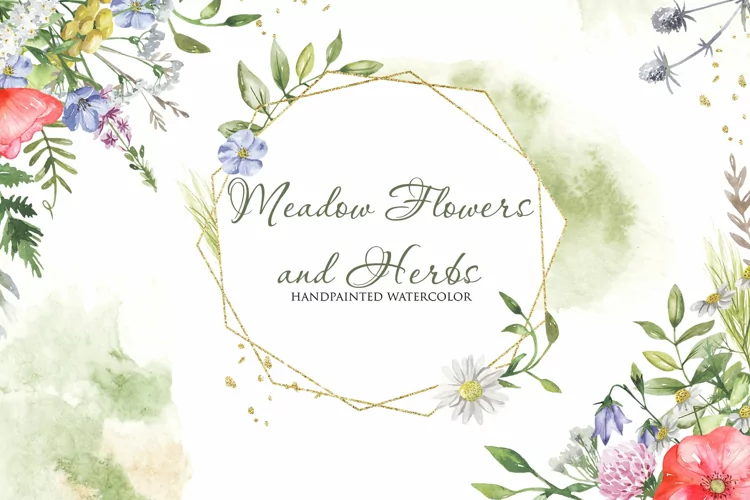 Watercolor collection clipart wildflowers, meadow flowers, herbs and plants. The set includes meadow flowers (poppies, flax, tansy, clover, chamomile, bluebells, bluehead, yarrow), leaves, branches, ears, watercolor stains. Watercolor wildflowers is perfect for summer projects, designs and ideas, wedding design, birthday, and also for creating wreaths, frames, cards, invitations, prints, scrapbooking, wallpaper, packaging, logos, blogs, eco-design and more.