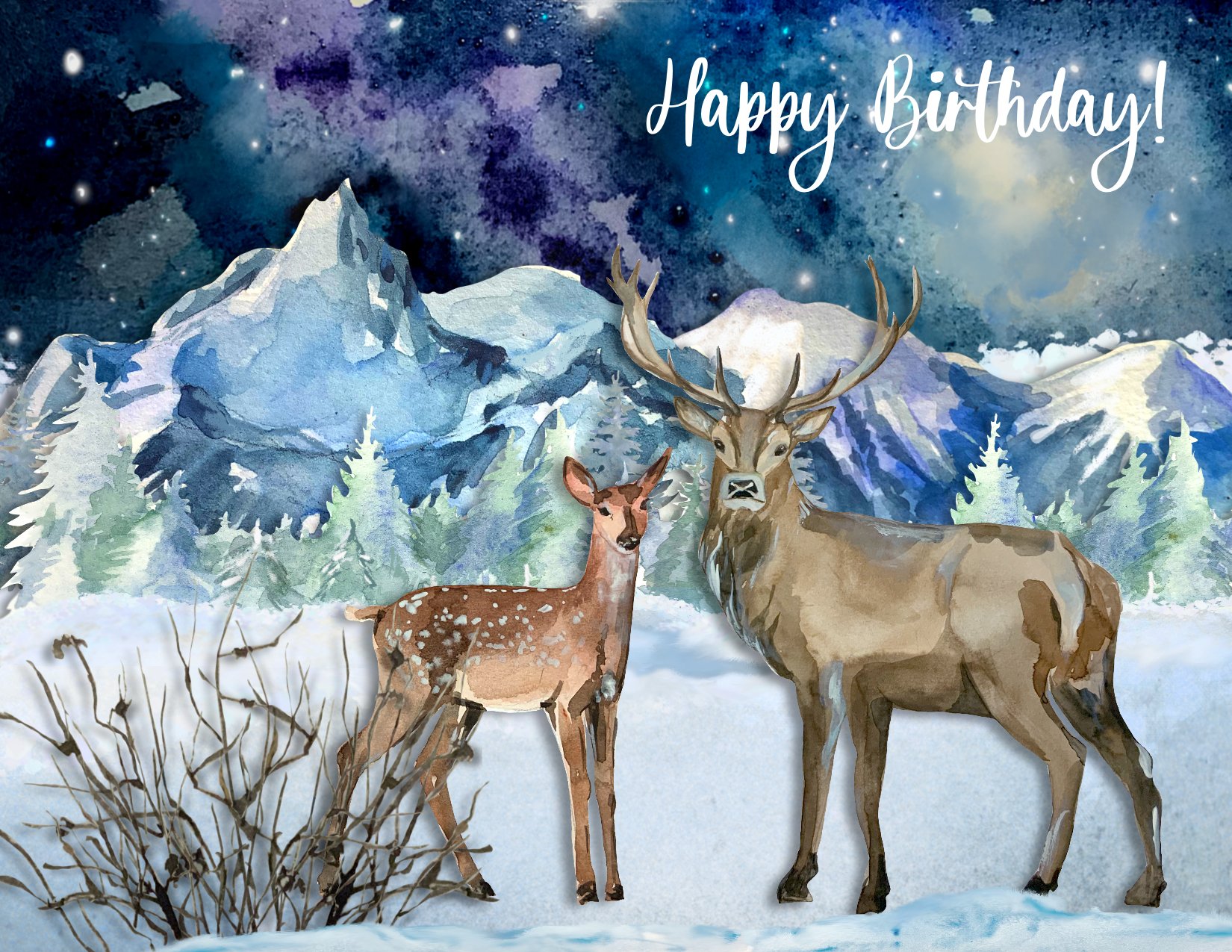 - 19 individual illustrations: mountains, trees, PNG watercolor backgrounds (transparent background 300dpi, 8/8 inches;
