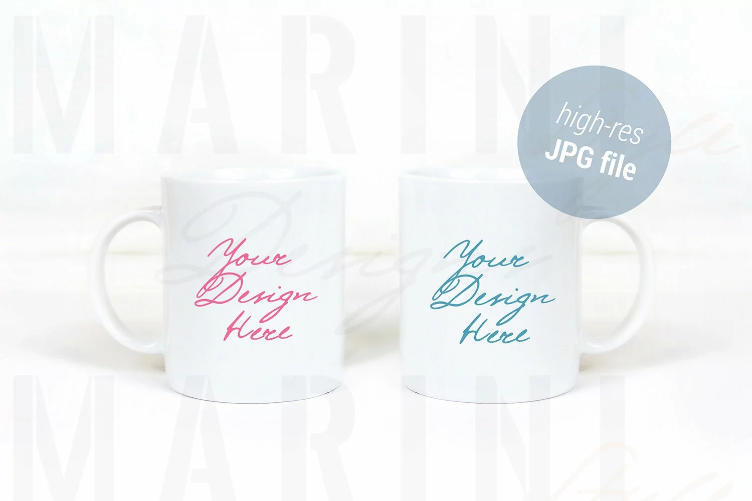 Two Mug mockup, 11oz Double Coffee mug Mock up Stock Photo to show your design for personalized coffee cups.