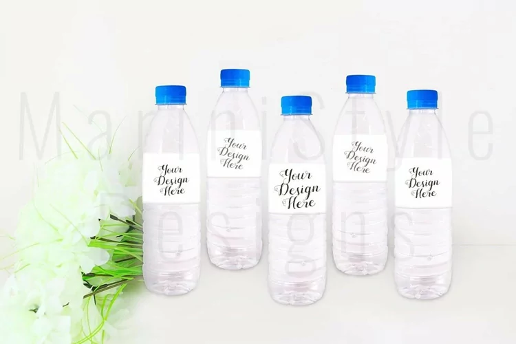 Water Bottle Mockup, Water Bottle Label Stock Photo PSD + Smart Object to show your design.