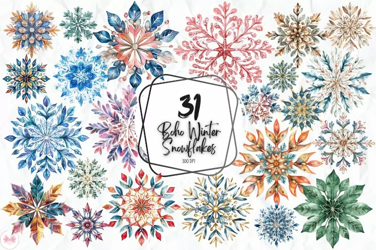 Snowflake Clipart Boho Clipart Cozy Winter Clipart Watercolor Snowflakes Clipart Winter Wonderland Clipart Bohemian Christmas Clipart Boho Holiday Clipart Boho Christmas & Winter Snowflakes Clipart Snowflake Illustrations Clipart Winter Aesthetic Clipart