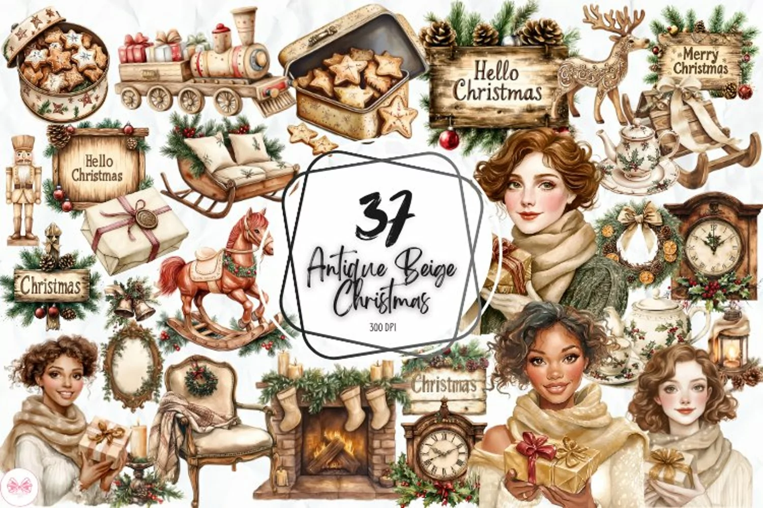Vintage Christmas Clipart Rustic Christmas Clipart Christmas Ornaments Clipart Holiday Decor Clipart Antique Holiday Clipart Antique Beige Christmas Clipart Beige Christmas Decor Clipart Christmas Nostalgia Clipart Vintage Beige Clipart Antique Christmas Illustrations Clipart