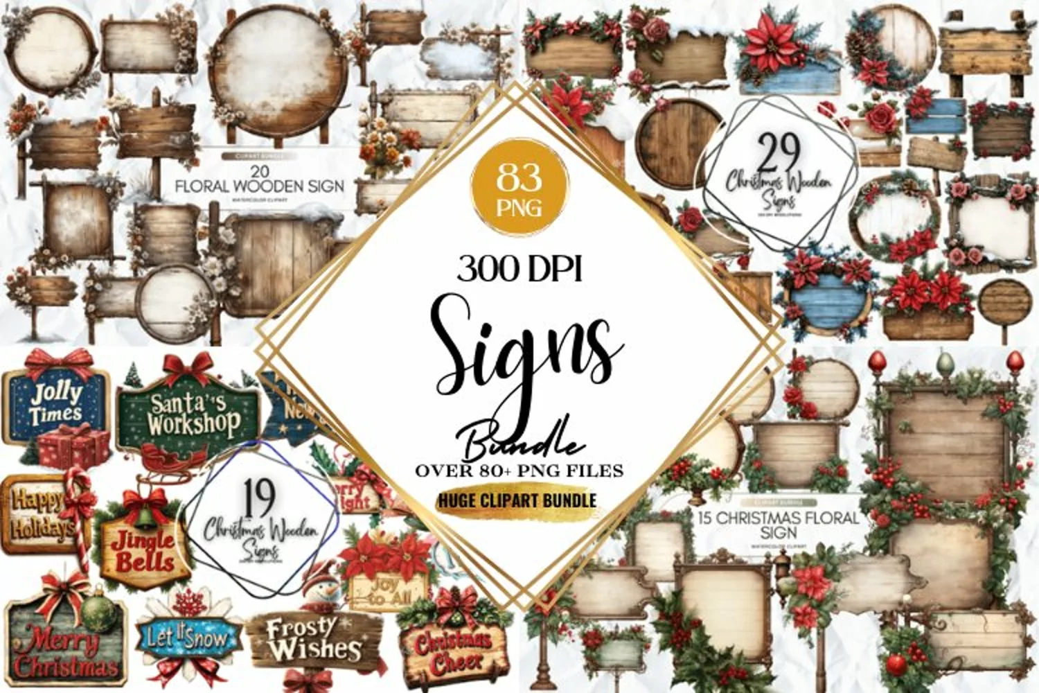 Christmas Wooden Signs Clipart Mega Bundle