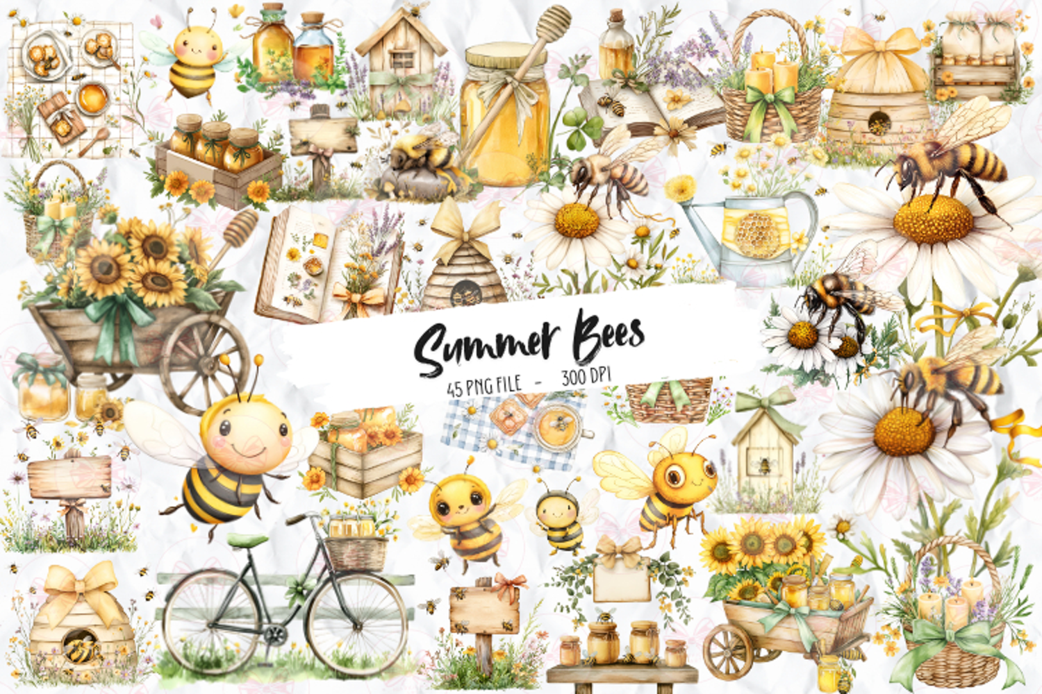 Summer Bees Clipart - 45 Png Bundle example image 1
