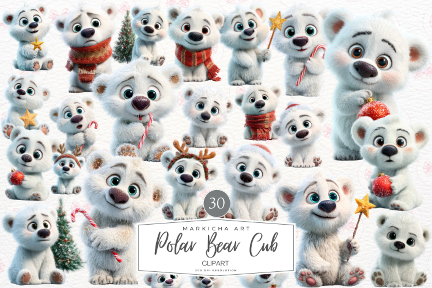 Winter Polar Bear Cub Clipart 30 Png Bundle example image 1