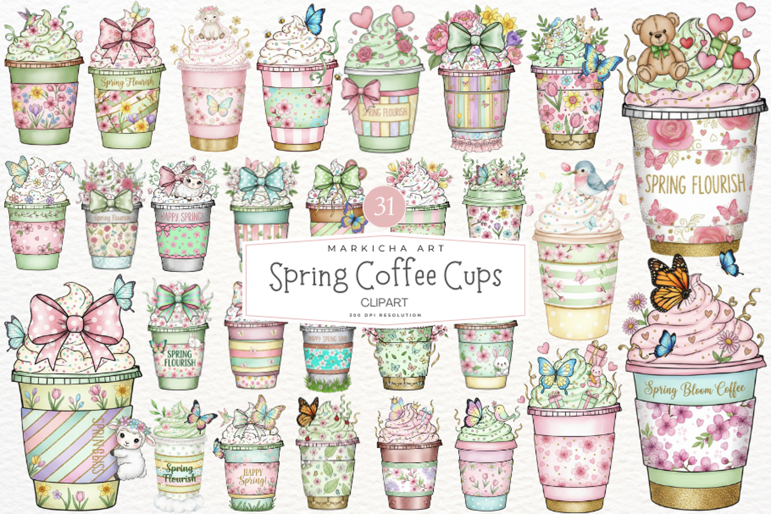 Coffee Png Cute Coffee Clipart Floral Mug Png Cozy Coffee Clipart Spring Coffee Cups Clipart Spring Latte Illustration Pastel Coffee Cups Png Cafe Spring Illustration Morning Coffee Illustration Spring Drink Clipart